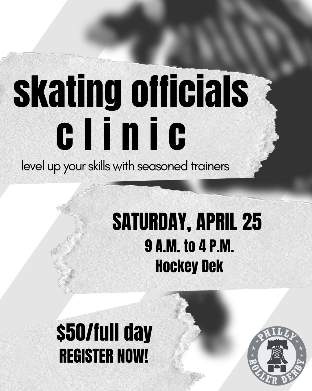 Philly Roller Derby will be hosting a clinic for skating officials on April 25th at The Hockey Dek in Springfield PA!